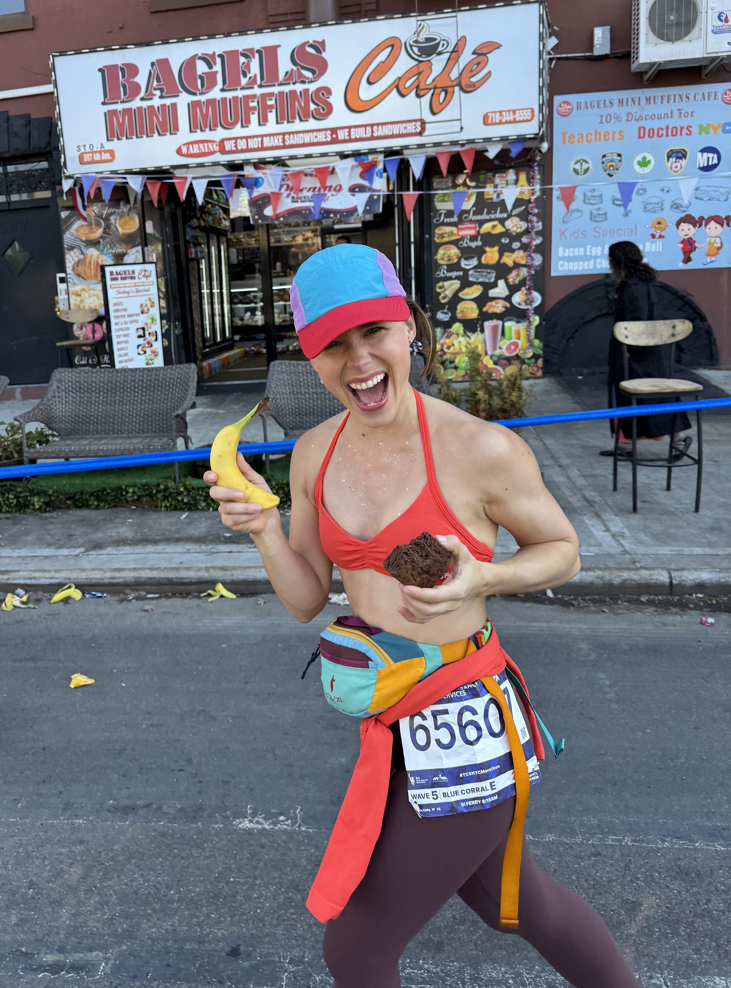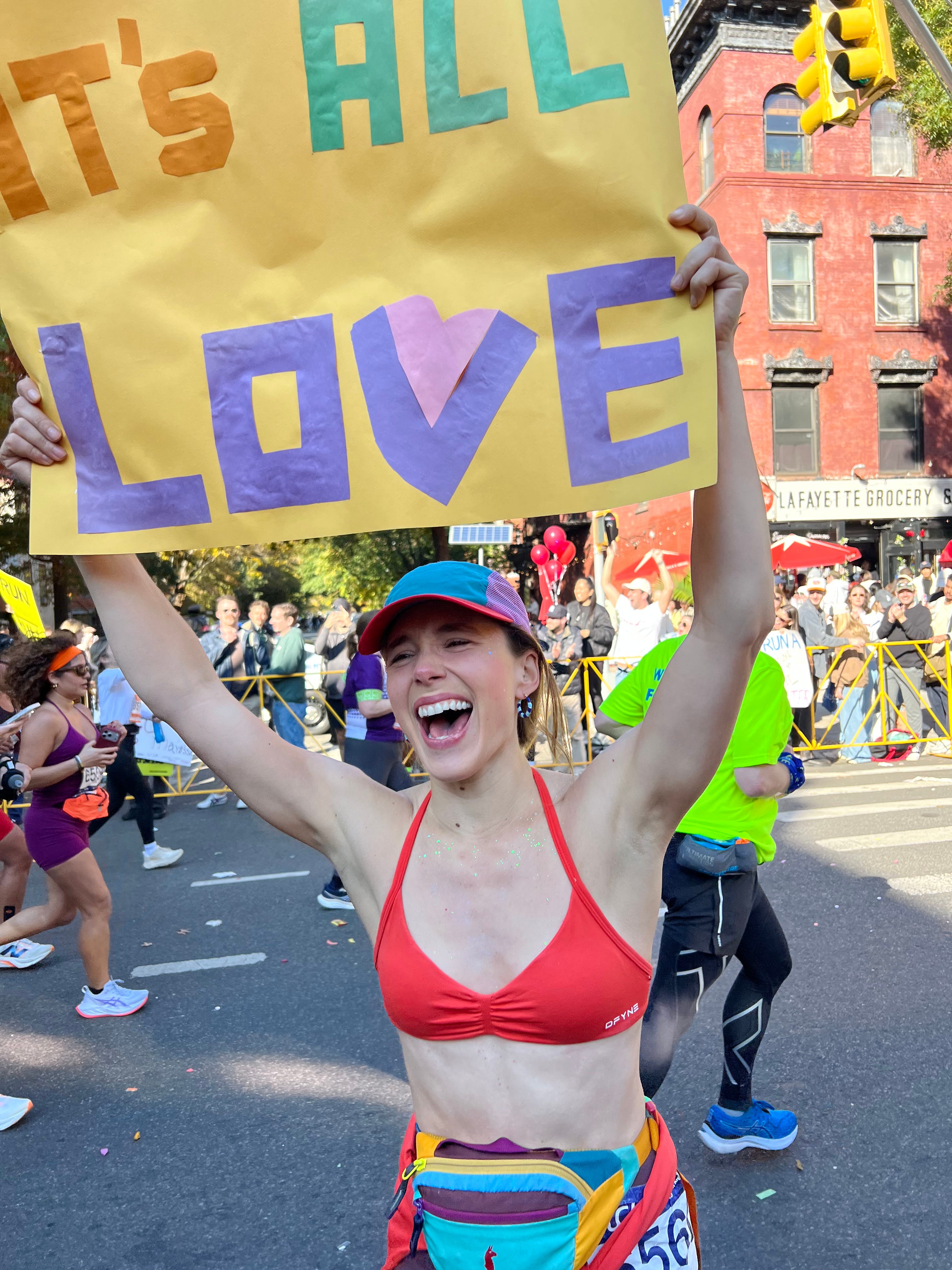 Most things I did were, honestly, pretty perfect. I paired a lot of intentionality with a healthy dose of “let’s just see what happens.” I spent way too long deciding what color to wear, trained on and off (emphasis on off—life stuff happens), and said yes to whatever vaguely athletic challenge came my way. My boyfriend coordinated people, signs, and the Partiful—basically acted as project manager of joy. Friends showed up, strangers cheered, I ran, I smiled until I thought my cheeks would fall off.
